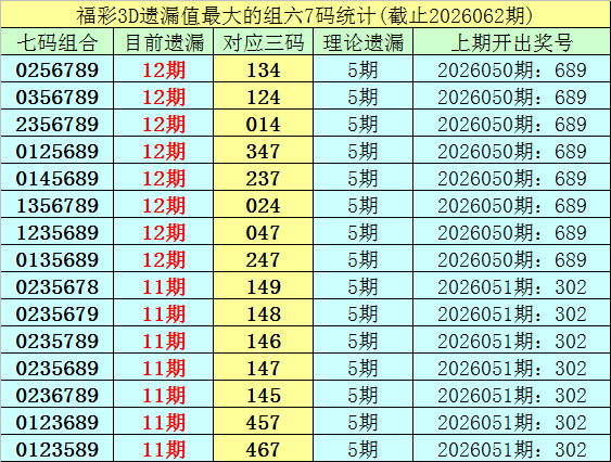 福彩3D七码遗漏组六分析(第2002001期-第2026062期)